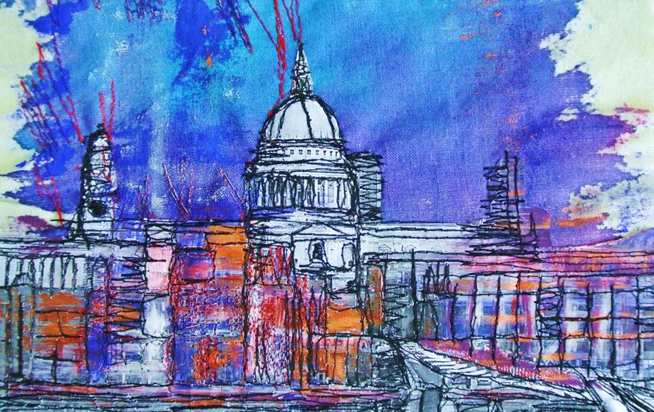 As well as teaching, I work from my studio at home producing pieces inspired by all the things I love including architecture, landscapes, nature, people and animals. Textile art is my passion and I try to incorporate free motion machine stitch into my work as much as possible, experimenting with layering paint on stitch to build and reveal an image.